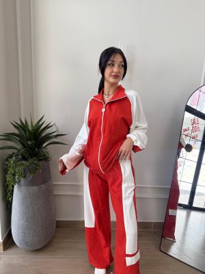 Home - YK Boutique - سبورت - أطقم رياضية طويل - طقم سبورت باللون الابيض والبرتقالي المحمر