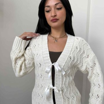 كنزة صوف ناعم باللون البيج مع تسكيرة شبر ابيض