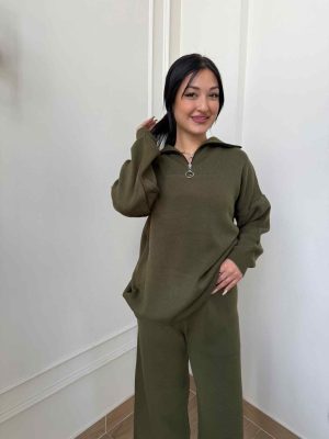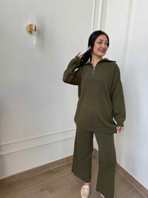 الرئيسية - YK Boutique - ملابس الشتاء - طقم شتوي باللون الزيتي
