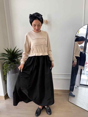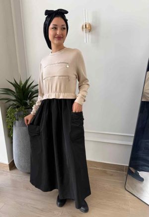 الرئيسية - YK Boutique - فساتين - فساتين محجبات - فستان بيج واسود